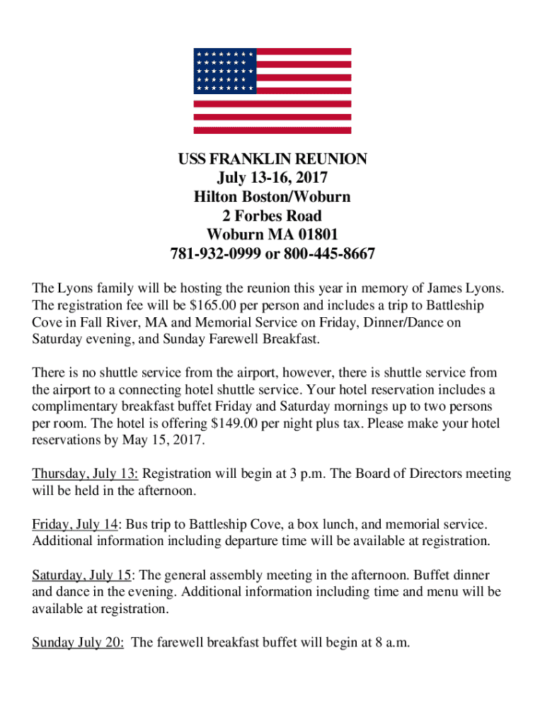 Get the free Uss Franklin Reunion Registration