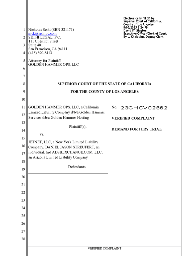 Get the free Verified Complaint