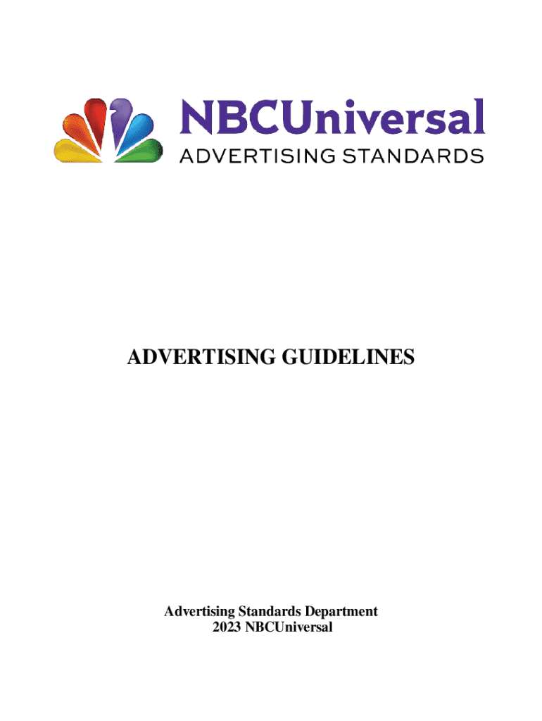 Comprehensive NBCUniversal Advertising Guidelines for 2023, guiding advertisers on ethical standards, compliance, and best practices across various categories.