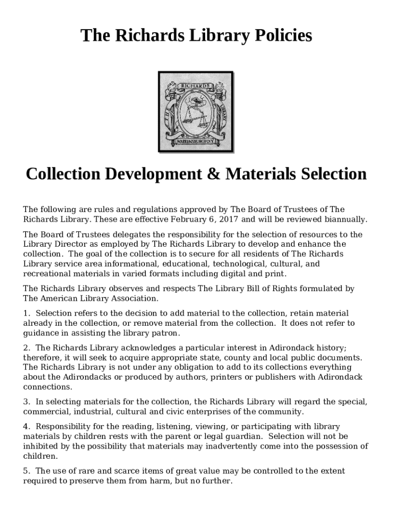 According to ESIGN Act 2000, forms written out and approved with an e-sign solution are considered to be legally binding, similarly to their hard analogs. This means you are free to fully fill out and submit Richards Library Policies fillable form to the individual or organization required to use electronic signature solution that meets all requirements in accordance with particular terms, like PDFfiller.