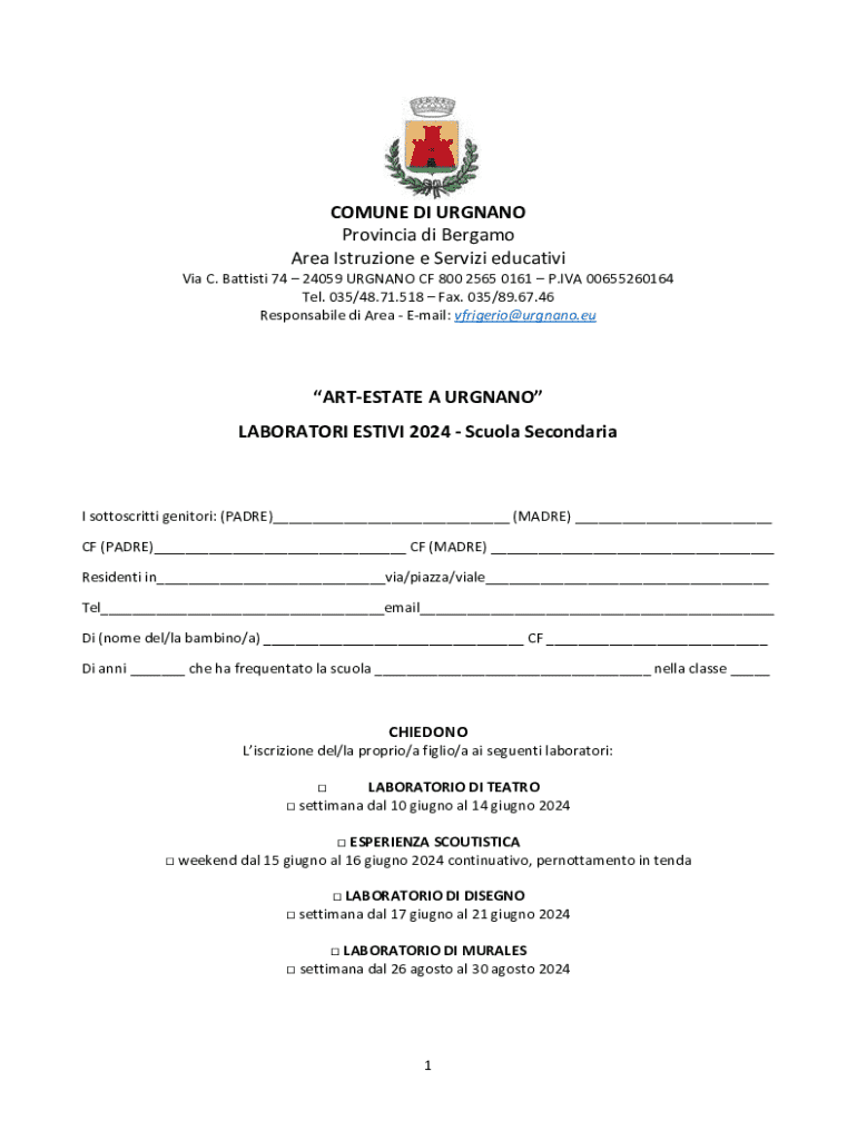 Ottieni il gratuito Area Istruzione e Servizi educativi - Comune di Urgnano