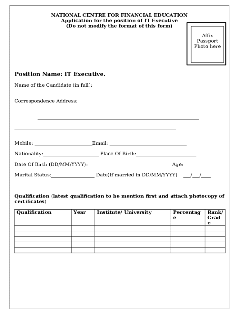 What is IT Executive. - National Centre for Financial Education (NCFE) Form?