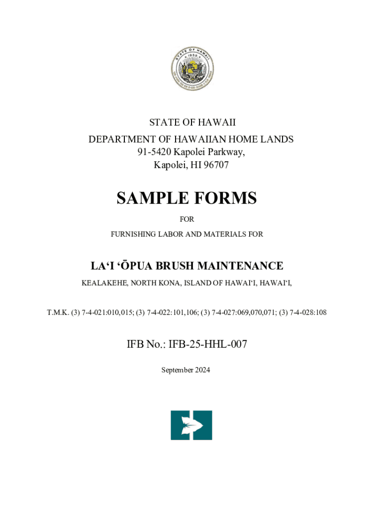 Explore the official sample forms for labor and materials for the La\'i Opua Brush Maintenance project in Hawaii, ensuring compliance with state regulations.