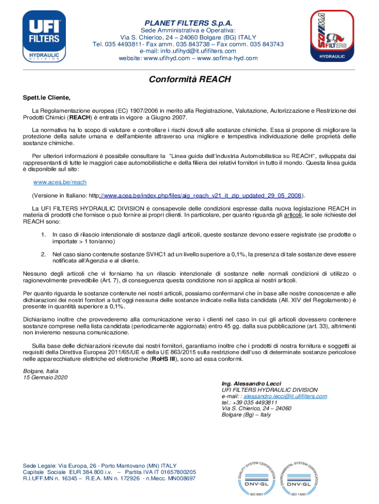 Sono tenuti a compilare ufi filters - download i produttori e i distributori di sostanze chimiche che devono rispettare le normative sulla sicurezza e sull'etichettatura.