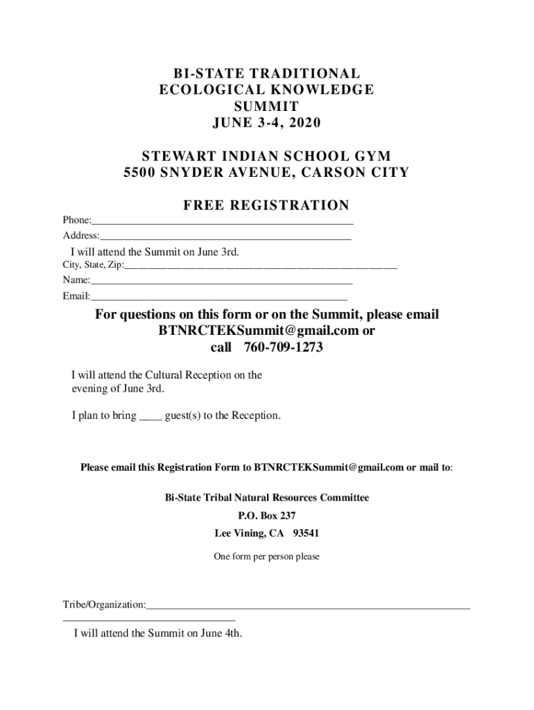 Register for the Bi-State Traditional Ecological Knowledge Summit on June 3-4, 2020. Join us for a valuable experience in Carson City. Free registration!