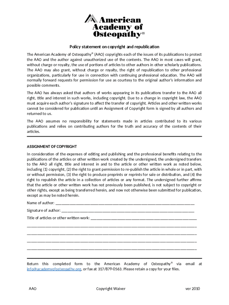 Assignment of Copyright template instructions