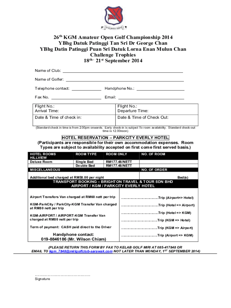Join the 26th KGM Amateur Open Golf Championship 2014. Register now for accommodation, transport, and competition details. Don\'t miss out!