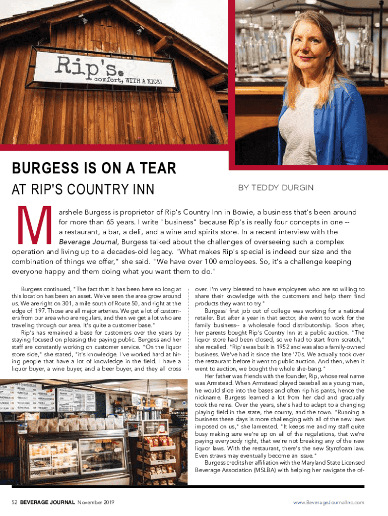Get the free Burgess Is on a Tear at Rip's Country Inn - Beverage Journal