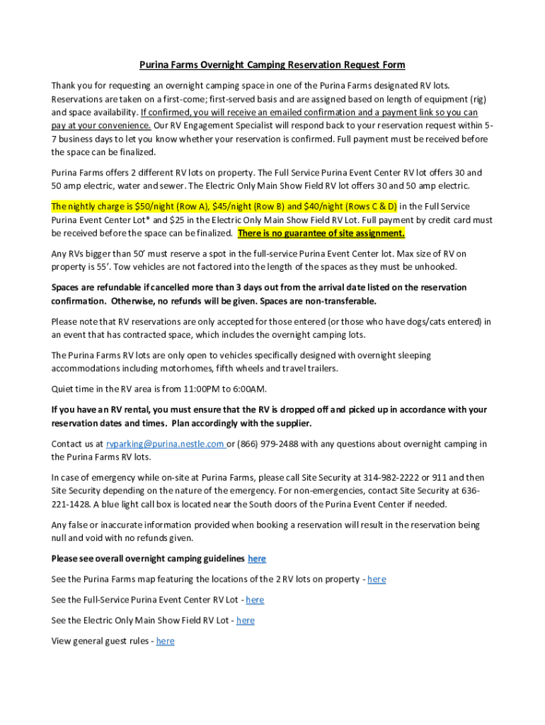 Get the free Thank you for requesting an overnight camping space in one of the Purina Farms desig...