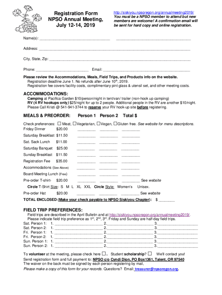 Get the free Registration Form - siskiyou npsoregon