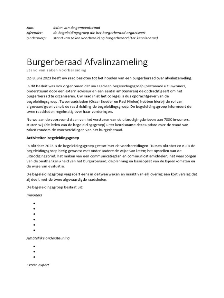 stand van taken voorbereiding burgerberaad (TER kennisname)Burgerberaad Afvalinzameling