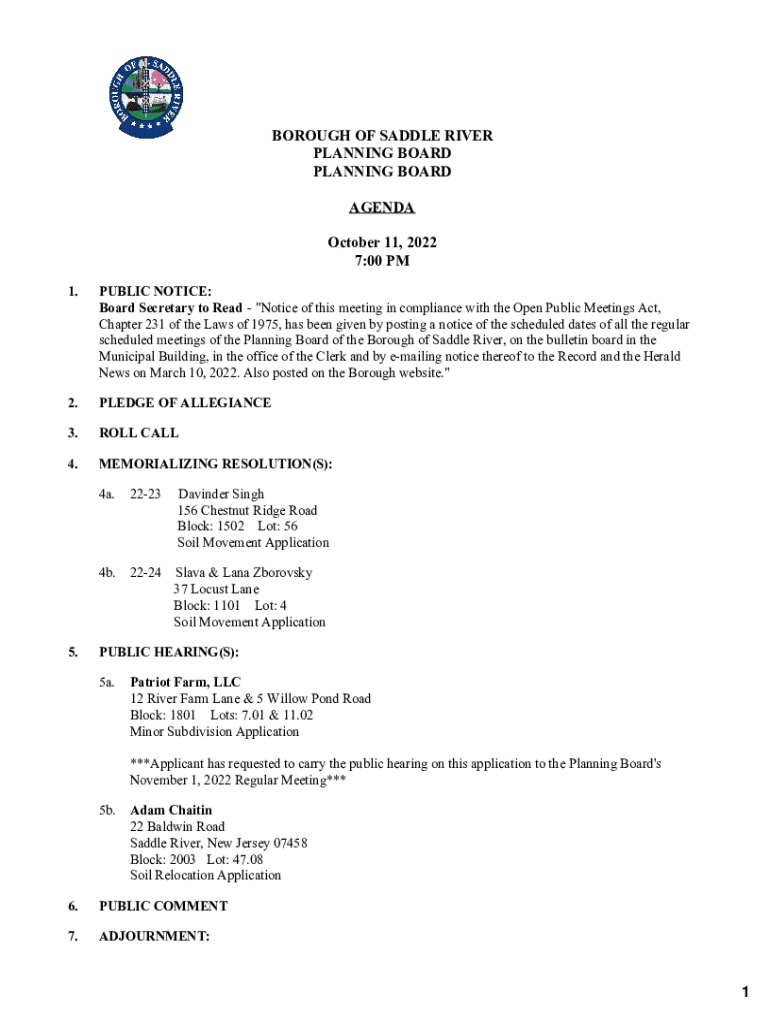 Tuesday meetings of the Brielle Planning Board are scheduled regularly, providing a venue for public hearings and discussions regarding various applications. Attendees can expect structured agendas where applicants present their proposals, followed by a session for questions and public comment. The planning board, composed of appointed officials, plays a key role in community development by evaluating these proposals for compliance with local zoning laws and overall impact on the area.