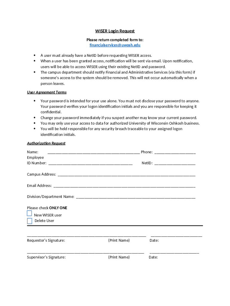 The All content - IT Knowledge Base - UW Oshkosh Confluence is a document which can be filled-out and signed for certain purposes. In that case, it is furnished to the relevant addressee to provide certain info of certain kinds. The completion and signing is available in hard copy or via an appropriate tool like PDFfiller. These tools help to complete any PDF or Word file without printing them out. It also lets you customize it according to your requirements and put legit digital signature. Upon finishing, the user ought to send the All content - IT Knowledge Base - UW Oshkosh Confluence to the recipient or several recipients by email and also fax. PDFfiller offers a feature and options that make your blank printable. It offers various settings for printing out appearance. No matter, how you'll distribute a document - physically or by email - it will always look neat and firm. In order not to create a new editable template from the beginning every time, make the original file as a template. After that, you will have a customizable sample.