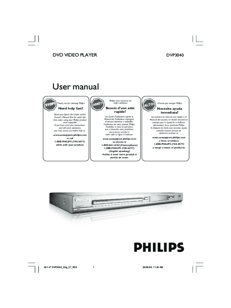 Get the free User manual Philips DVP3040 (English - 47 pages)