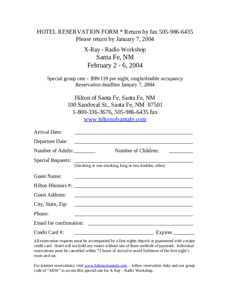HOTEL RESERVATION * Return by fax 505-986-6439 word template: frequently asked questions