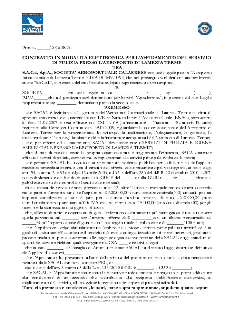 S.A. Cal. S.p.A., SOCIETY\' AEROPORTUALE CALABOOSE con see legal