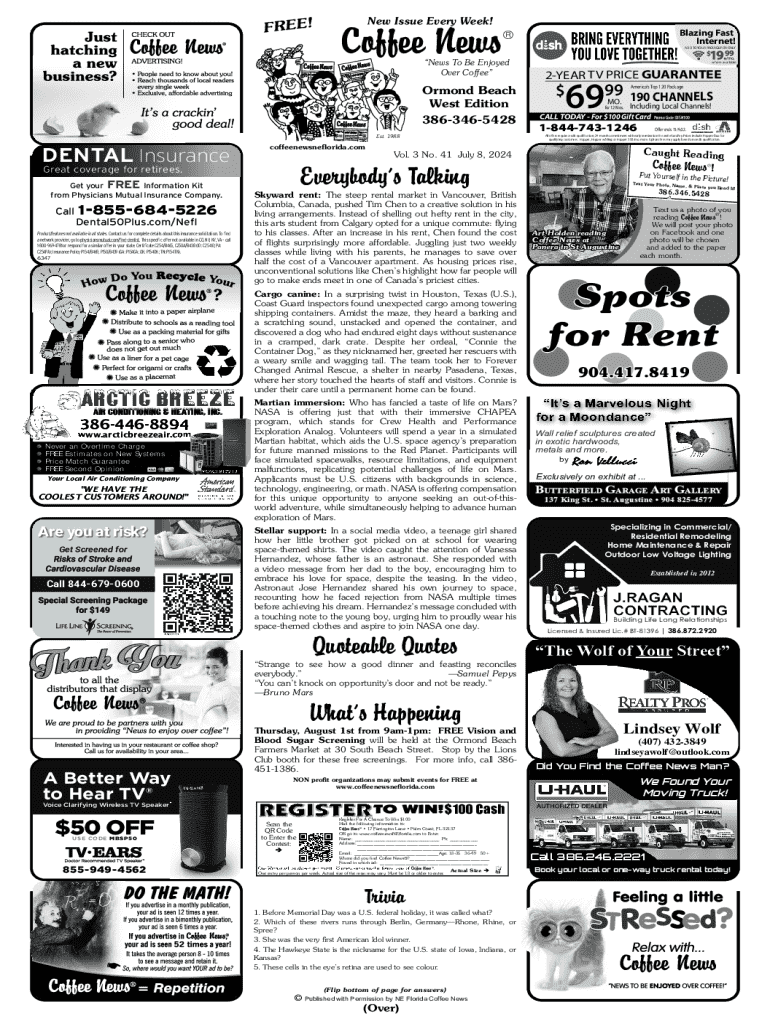 Explore the latest Coffee News from Ormond Beach, featuring community events, unique stories, and local business highlights. Stay informed and entertained!