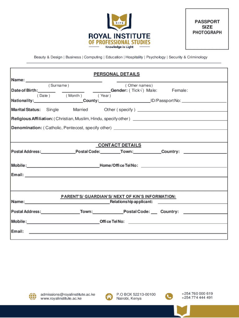 Complete the Royal Institute of Professional Studies application form with personal, financial, and academic details for admission consideration in 2023.