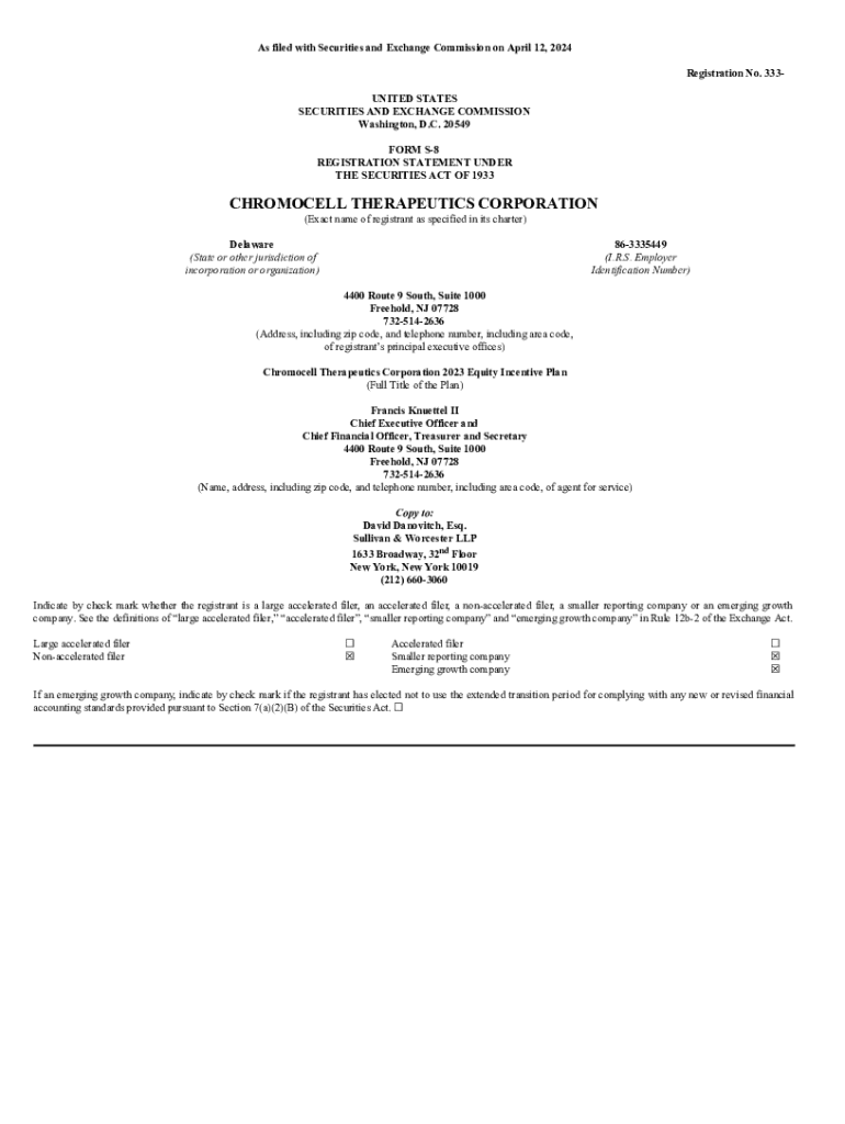 As filed with Securities and Exchange Commission on April 12, 2024 Registration No. 333UNITED STATES SECURITIES AND EXCHANGE COMMISSION Washington, D.C. 20549 FORM S8 REGISTRATION STATEMENT UNDER