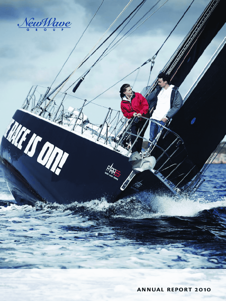 annual report 2010Our brands Business area Corporate PromoBusiness area Sports & LeisureBusiness area Gifts & Home FurnishingsContents Brands 2010 in summary Statement by the Managing Director About New Wave Group New Wave Group in the world Small company flexibility with large company synergies Business area Corporate Promo Business area Sports & Leisure Business area Gifts & Home Furnishings Ethics and the Environment Corporate Governance Share Financial Information Addresses Board of