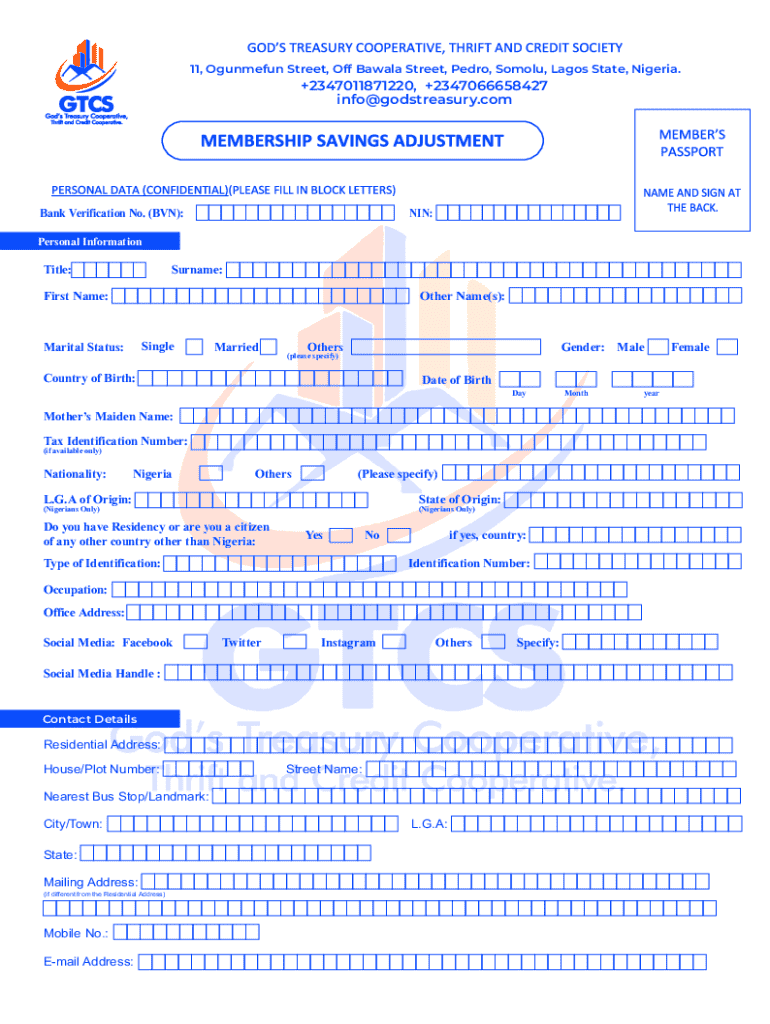 Gods Treasury Cooperative Membership is not the form you're looking for?Search for another form here.