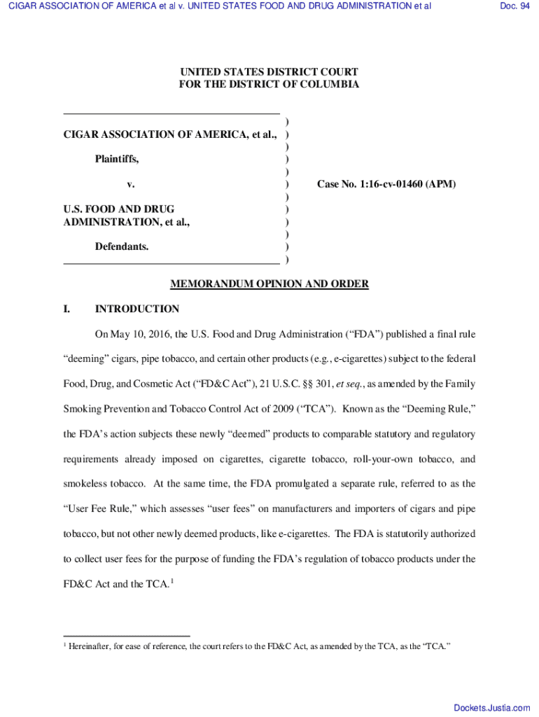 Get the free CIGAR ASSOCIATION OF AMERICA et al v. UNITED ...
