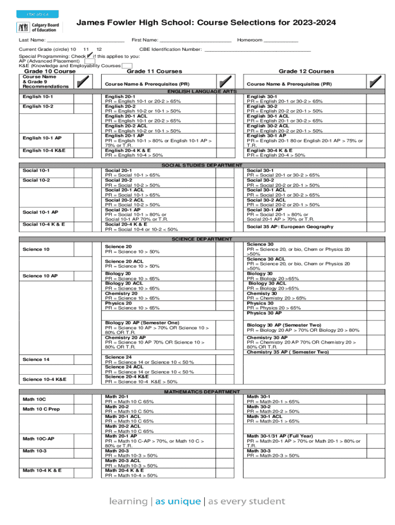James Fowler High School: Course Selections for 20232024