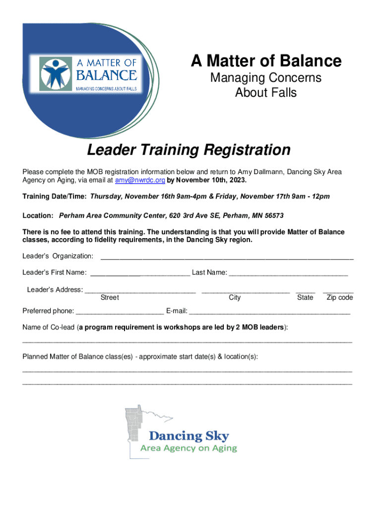 Register for the Matter of Balance Leader Training on November 16-17, 2023, and help manage concerns about falls in your community.