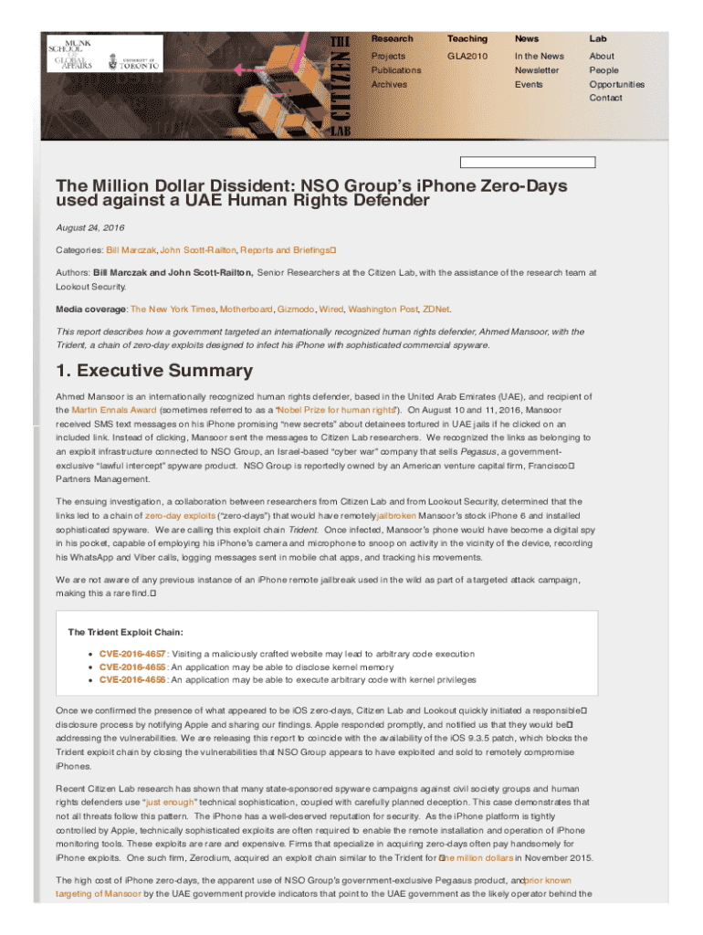 Get the free the Million Dollar Dissident: Nso Group’s Iphone Zero-days Used Against a Uae Human ...