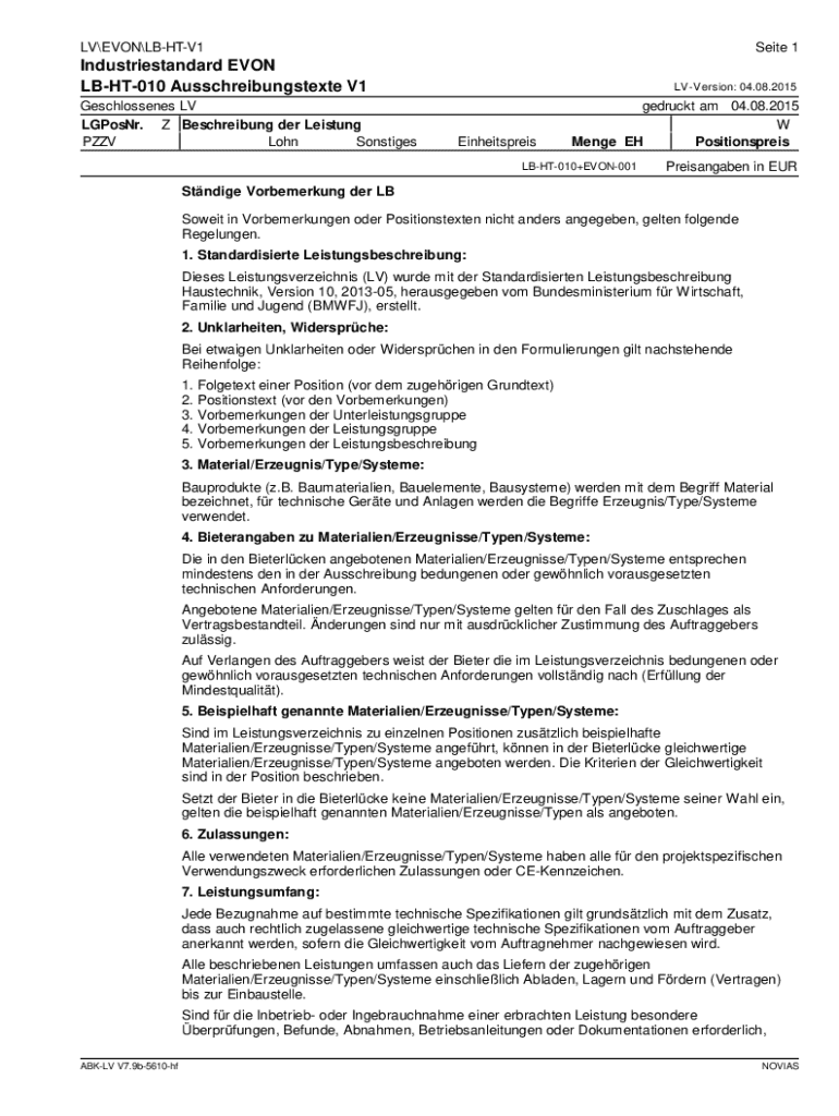 Wie fülle ich industriestandard evon lb-ht-010 ausschreibungstexte aus?