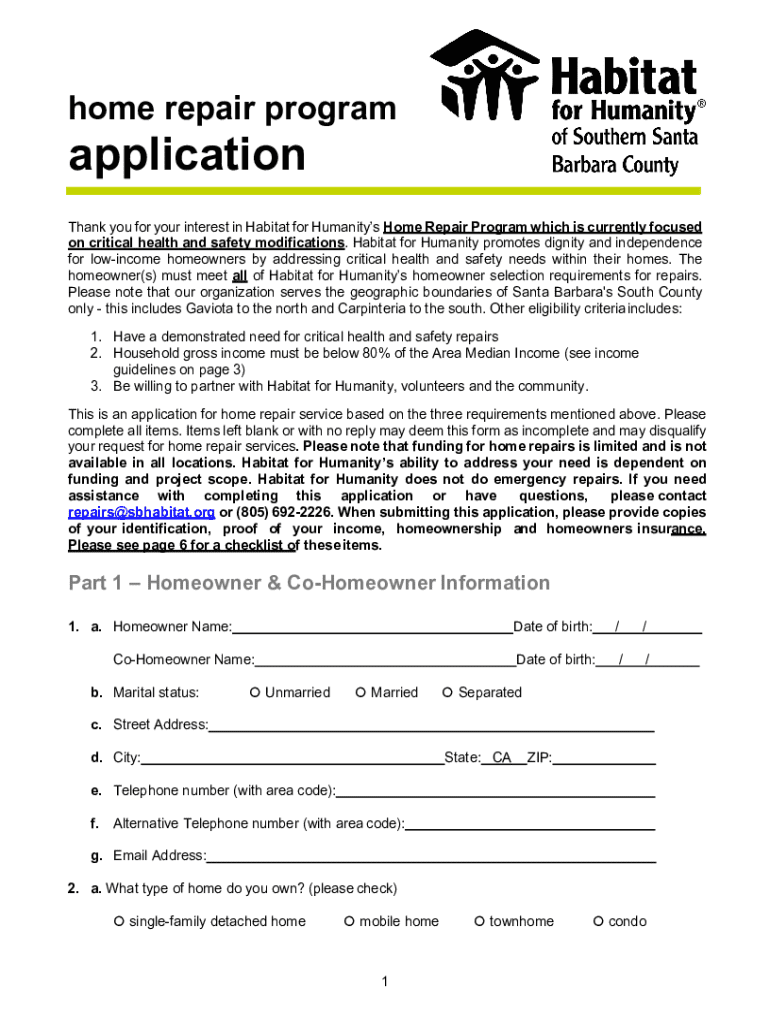 Home repair programapplicationThank you for your interest in Habitat for Humanities Home Repair Program which is currently focused