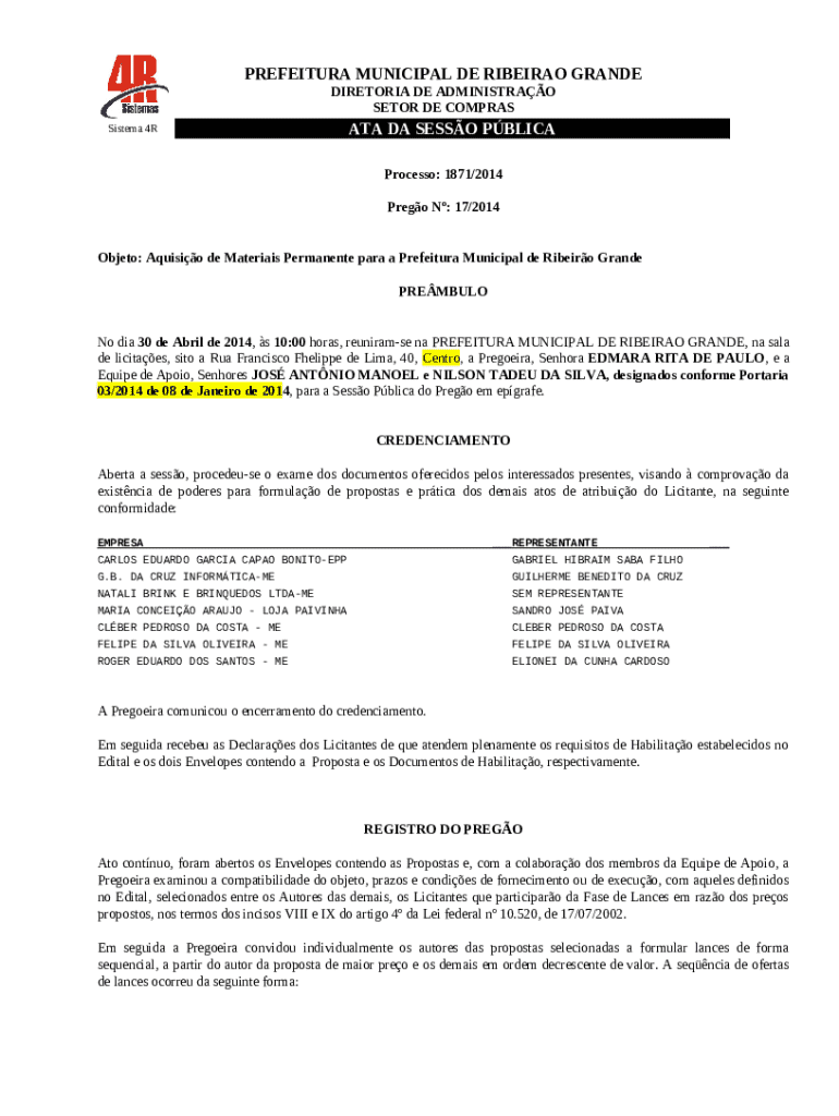 Instructions for the form Objeto:Aquisio de Materiais Permanente para a Prefeitura Municipal de Ribeiro Grande