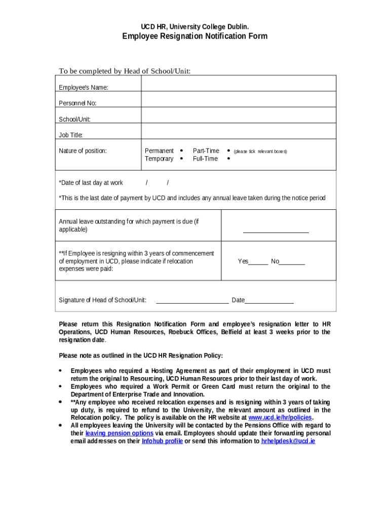 Instructions for the Resignation Notification form