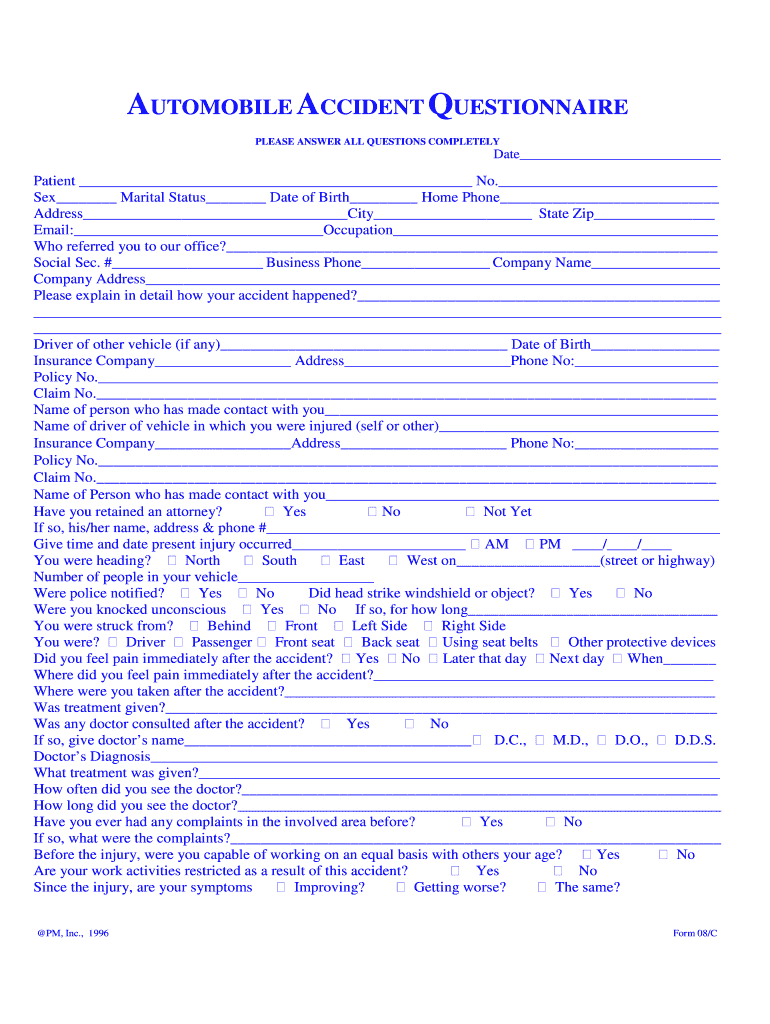 How to fill out automobileaccidentquestionnaire - perfect patients