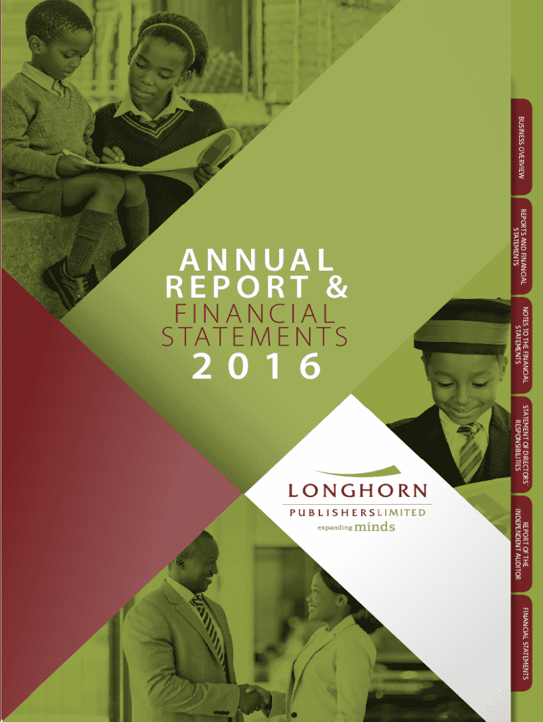BUSINESS OVERVIEWREPORTS AND FINANCIAL STATEMENTSANNUAL REPORT &NOTES TO THE FINANCIAL STATEMENTSFINANCIAL S TAT E M E N T S2016STATEMENT OF DIRECTORS RESPONSIBILITIESREPORT OF THE INDEPENDENT AUDITORFINANCIAL STATEMENTS1www.longhornpublishers.com2LONGHORN PUBLISHERS ANNUAL REPORT AND FINANCIAL STATEMENTS 20152016BUSINESS OVERVIEWREPORTS AND FINANCIAL STATEMENTSNOTES TO THE FINANCIAL STATEMENTSSTATEMENT OF DIRECTORS RESPONSIBILITIESREPORT OF THE INDEPENDENT AUDITORFINANCIAL STATEMENTS3www