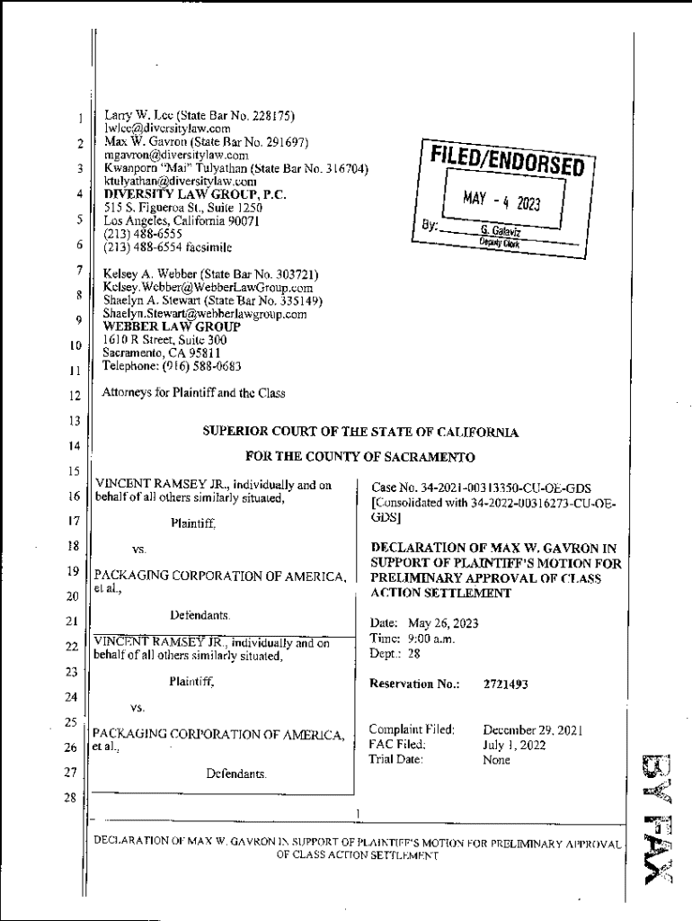 DECLARATION OF MAX W. GAVRON1 2I, Max W. Patron, declare as follows:31. I am an attorney at law, duly licensed to practice before all Courts in the State of4California, and am with the law firm Diversity