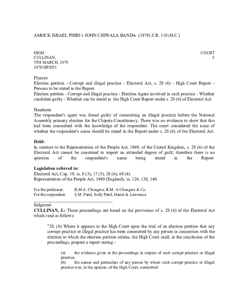 This document provides insights into the 1979 High Court ruling on election petitions, addressing corrupt practices under the Electoral Act and implications for candidates.
