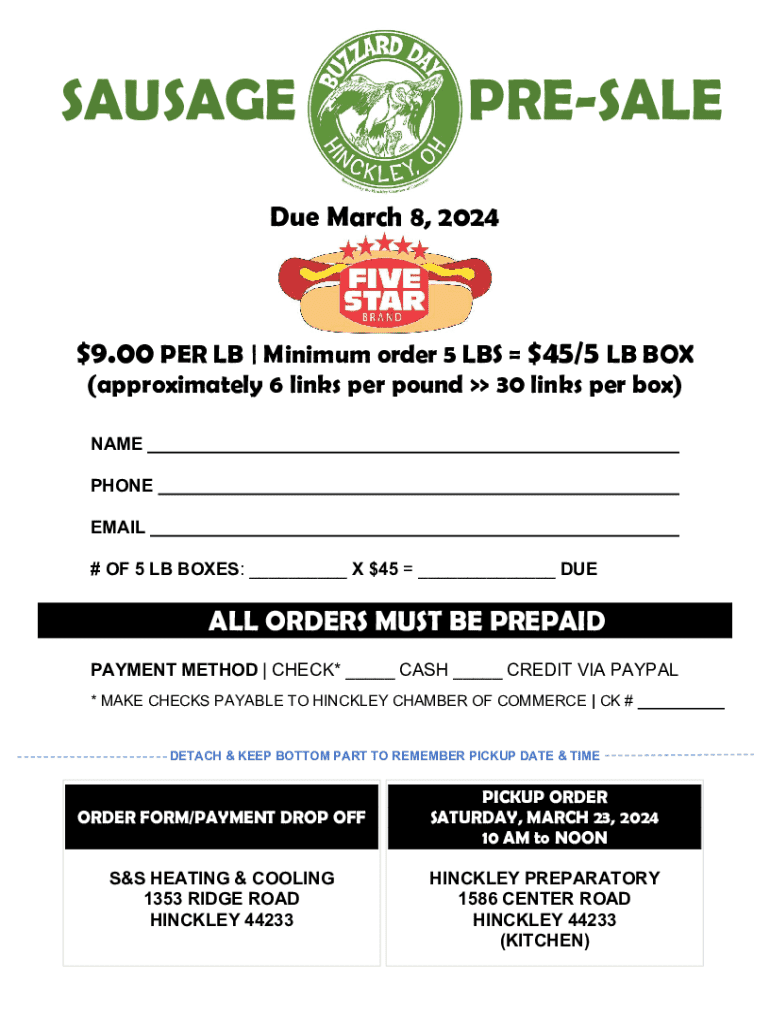 Order your sausages ahead of time for pickup on March 23, 2024. Complete the form and ensure your prepayment to enjoy delicious options!