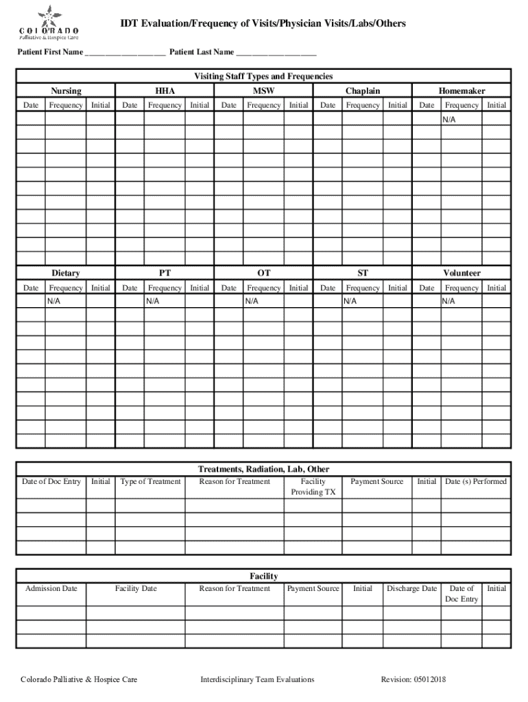 IDT Evaluation/Frequency of Visits/Physician Visits/Labs/Others
