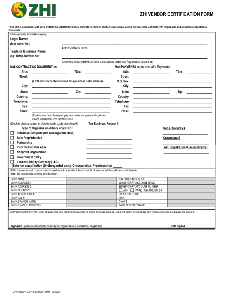 Vendors who wish to engage in business transactions or contracts with certain organizations or governmental entities are typically required to file the zhi vendor certification form.