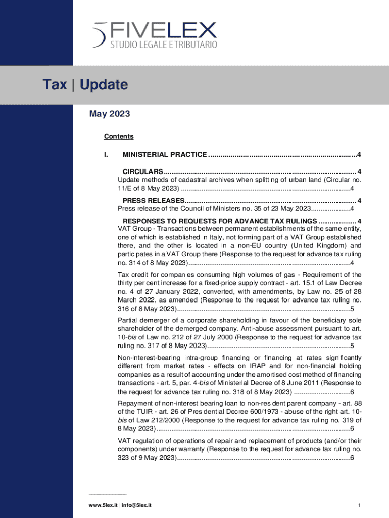 Tax | Update May 2023 ContentsI.MINISTERIAL PRACTICE .........................................................................4 CIRCULARS ......................................................................................................