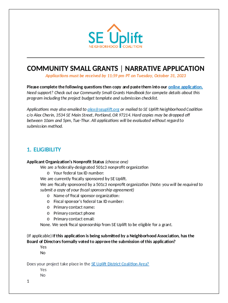 The Community Small Grants Narrative Application is a Word document you can get filled-out and signed for specified reasons. In that case, it is provided to the relevant addressee in order to provide some details of any kinds. The completion and signing is available manually or via an appropriate service e. g. PDFfiller. These tools help to fill out any PDF or Word file online. It also lets you customize its appearance depending on your needs and put an official legal electronic signature. Upon finishing, the user ought to send the Community Small Grants Narrative Application to the respective recipient or several ones by email and even fax. PDFfiller has got a feature and options that make your blank printable. It includes various settings for printing out. It does no matter how you'll file a document - in hard copy or electronically - it will always look well-designed and clear. In order not to create a new document from scratch every time, make the original document as a template. Later, you will have an editable sample.