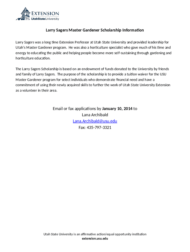 What is Larry Sagers Scholarship for Master Gardeners - USU Extension - extension usu Form?