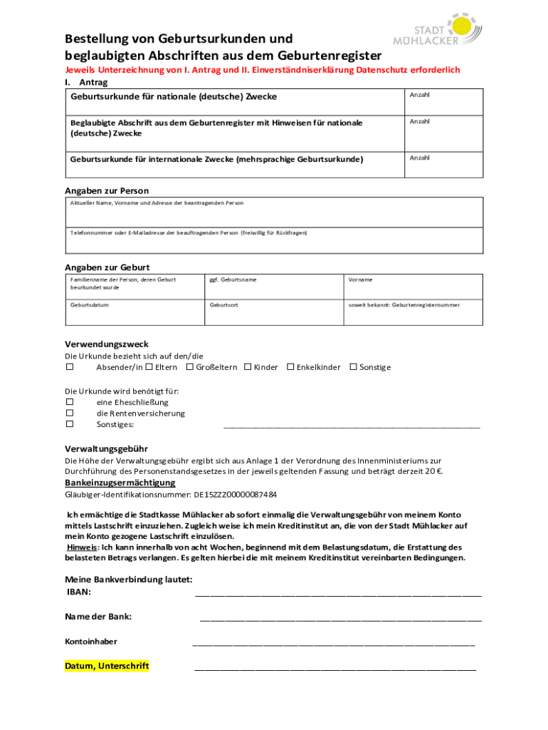 Wie fülle ich beantragung einer deutschen geburtsurkunde aus?