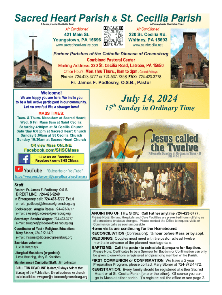 Stay updated with Sacred Heart and St. Cecilia Parishes in Latrobe, PA. Join us for masses, events, and community engagement this July 2024.