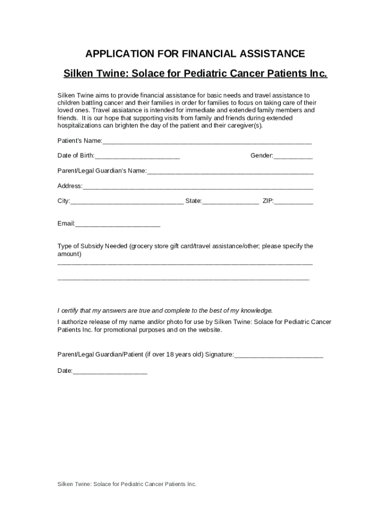 - Get the Solace for Pediatric Cancer Patients Inc. - Silken Twine form in PDFfiller’s catalogue.