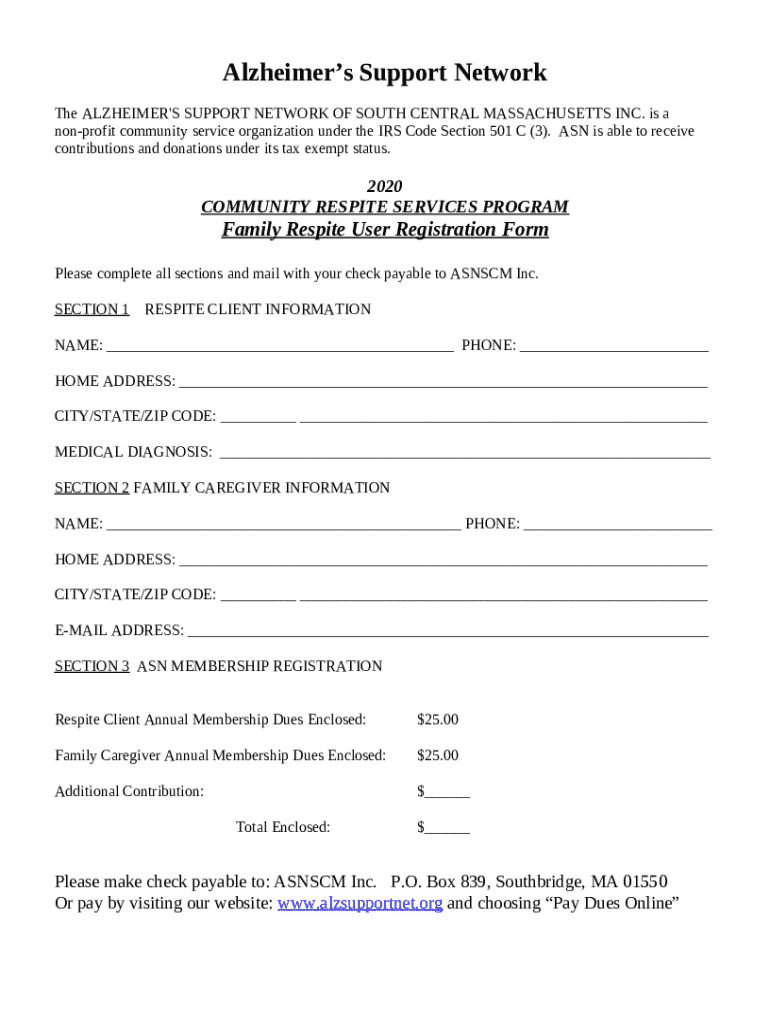 What is Family Respite User Registration Form?