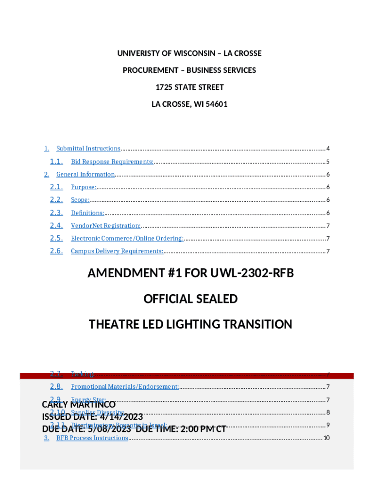 Request for Bid - University of Wisconsin River Falls: frequently asked questions