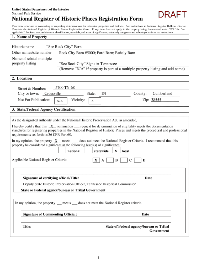 United States Department of the Interior National Park ServiceDRAFTNational Register of Historic Places Registration FormThis form is for use in nominating or requesting determinations for individual