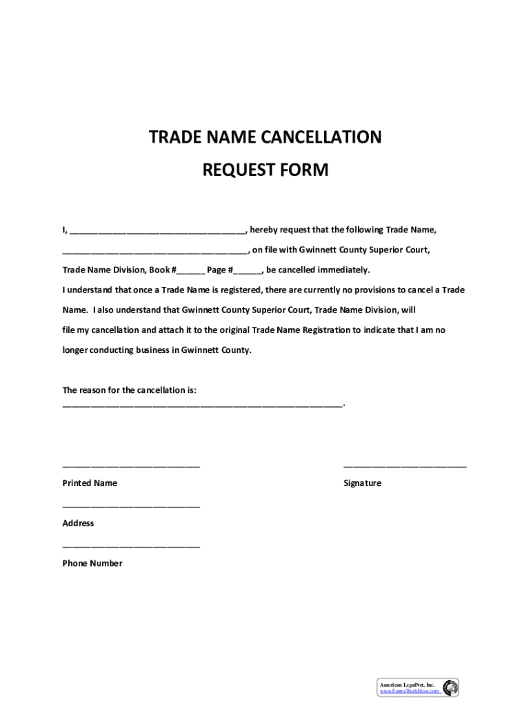 Trade Name Cancellation Request is not the form you're looking for?Search for another form here.